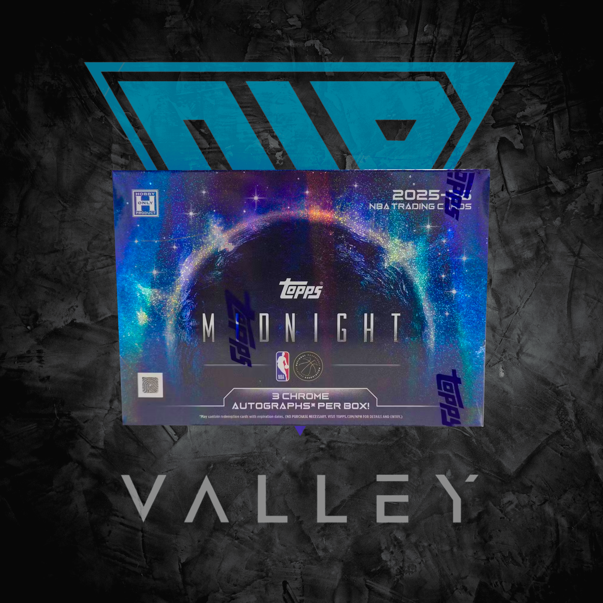 Topps Midnight Basketball returns for 2025-26 with a striking blend of premium design and after-hours attitude. Collect autographs across the Stroke of Midnight, Midnight Sun, Dark Matter, Horizon, Midnight Oil and the new Dark Marks sets featuring the year's top rookies, superstar veterans, and retired legends.